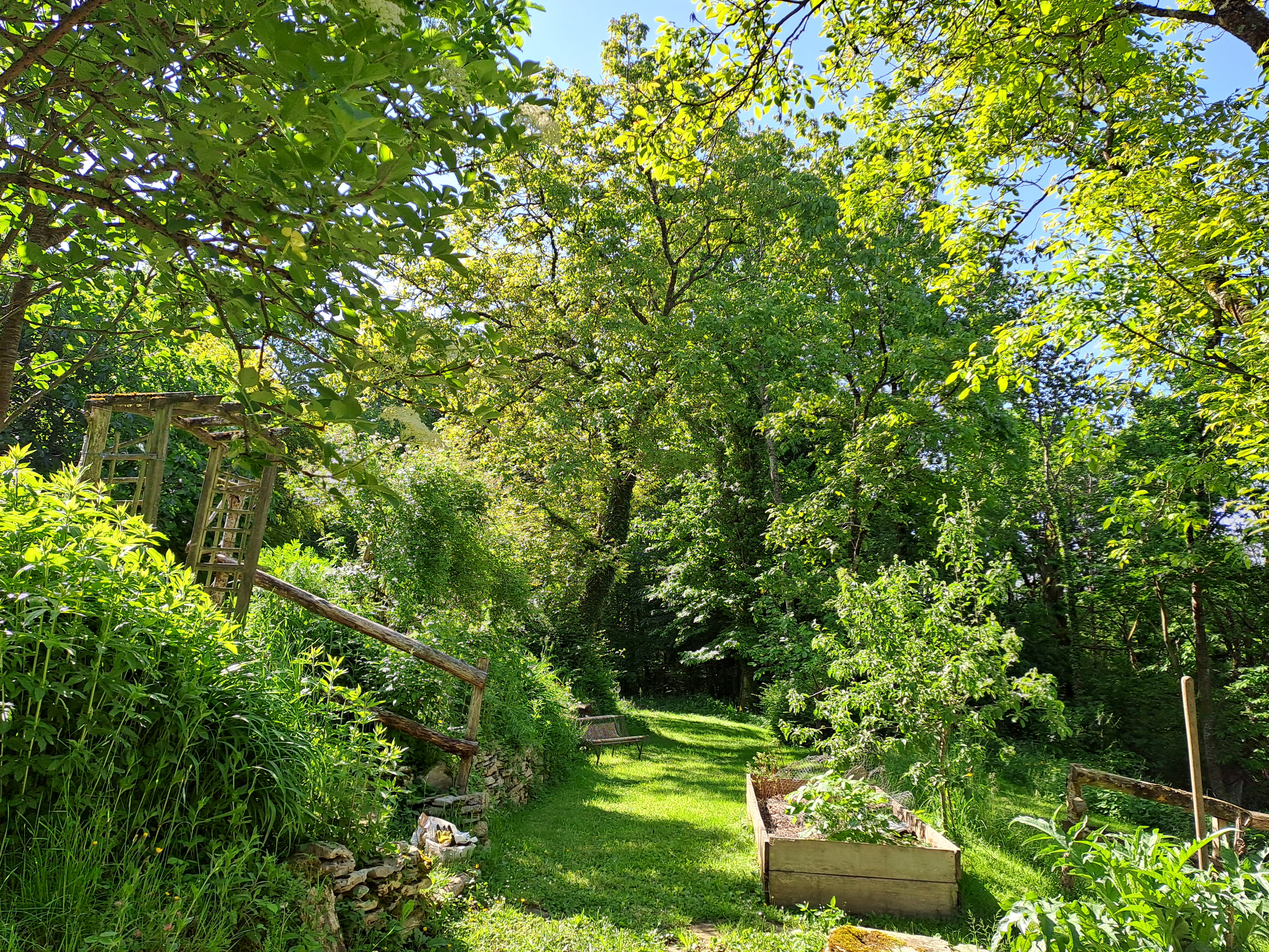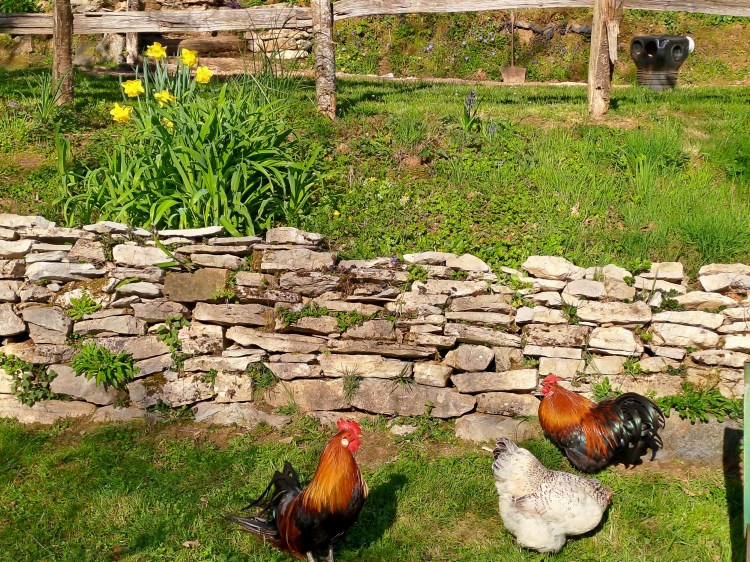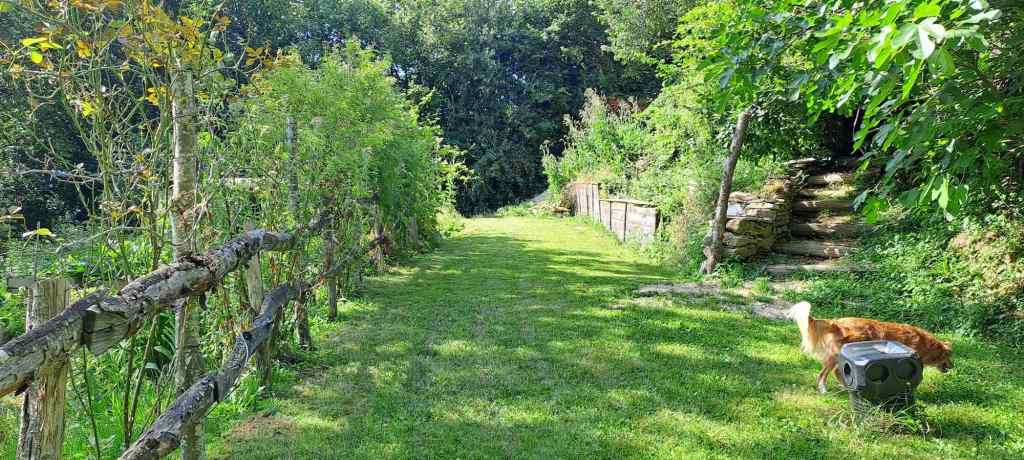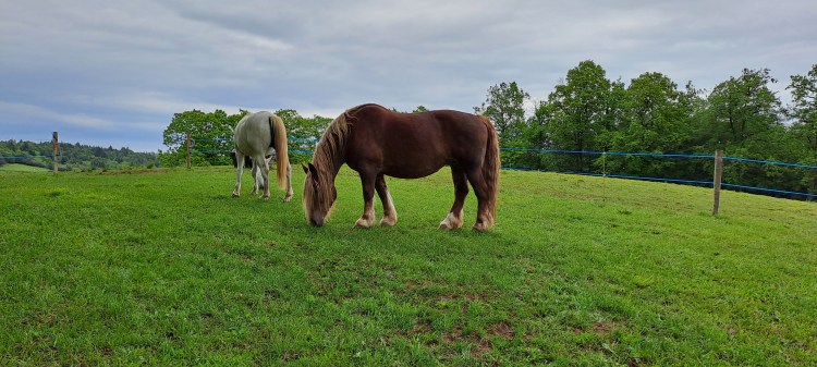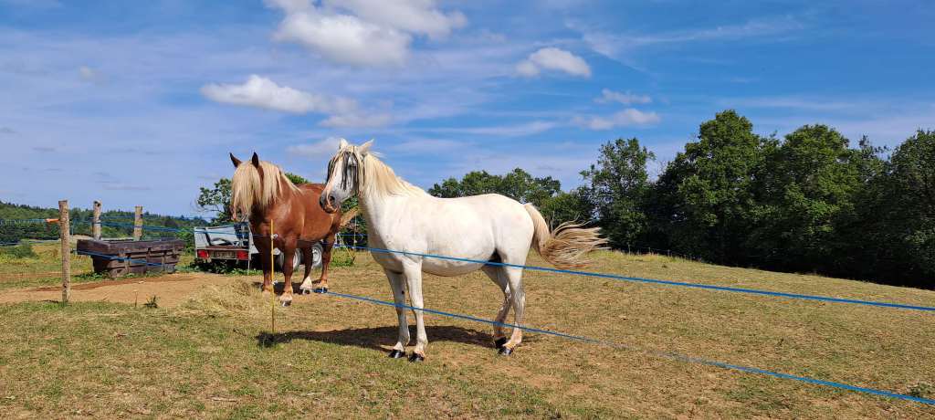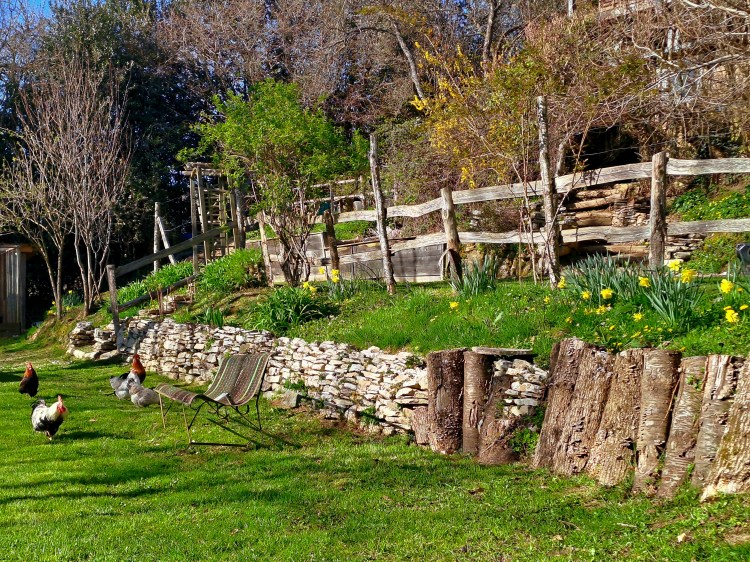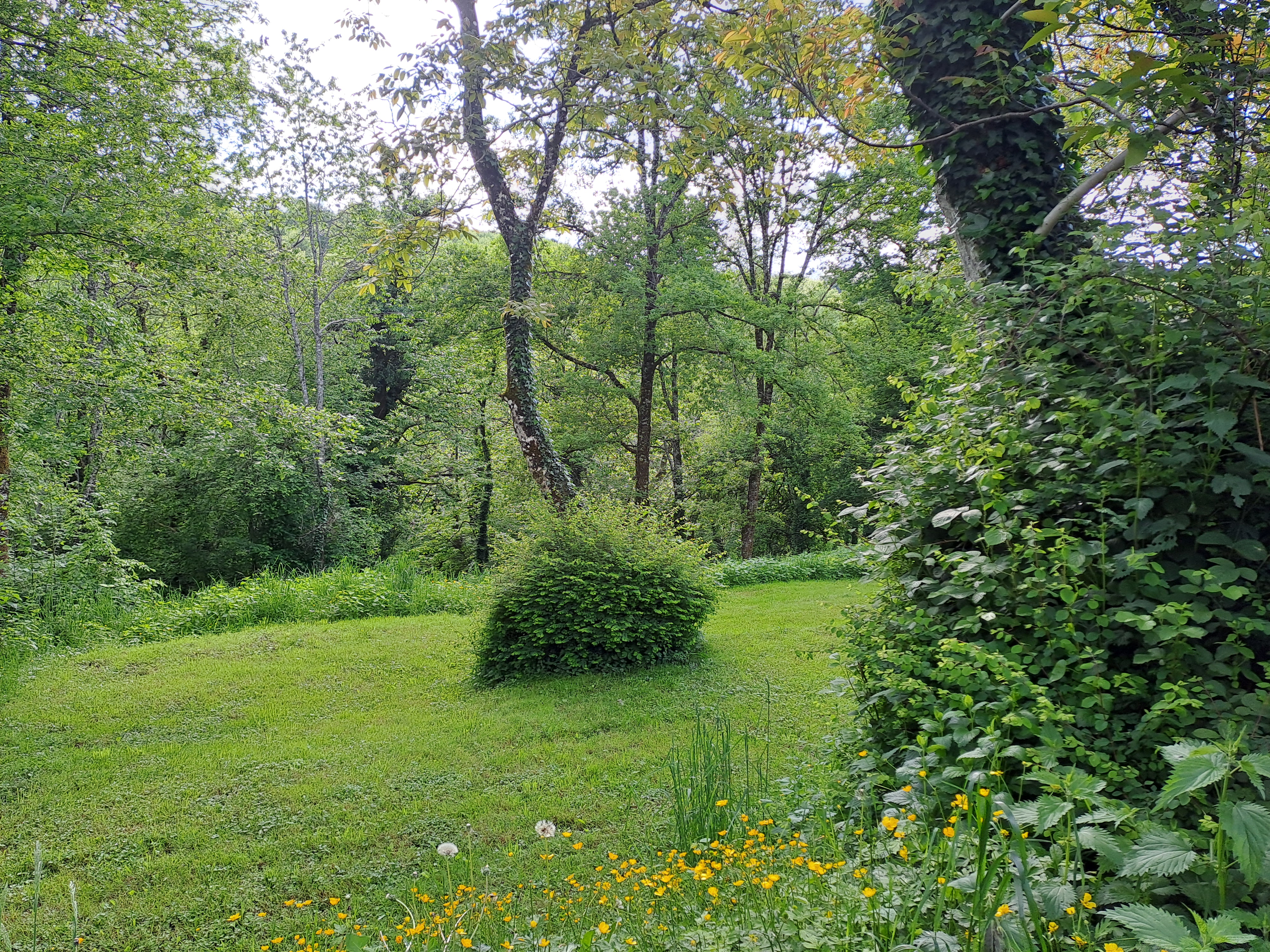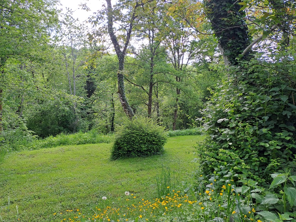 We have 5 hectares/12.5 acres of land. Approximately 2.5 hectares/6.25 acres are meadow, 2.5 hectares/6.25 acres are forested (chestnuts, oak, beech and birch primarily), while the mature garden measures around 2500 m2. Harvesting our firewood from the forest means winter heating costs are negligible; chestnuts, walnuts and wild mushrooms abound and provide delicious abundance throughout the year. We have two horses, a dog and cat and a family of chickens. This verdant part of the Lot is home to a vast and varied bird population as well as many wild creatures.