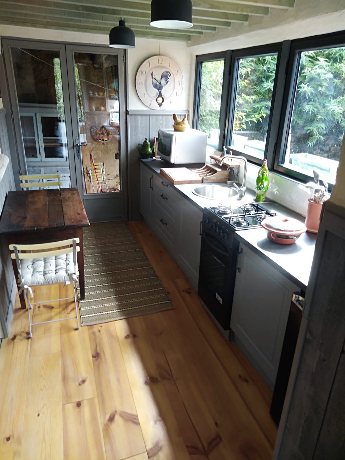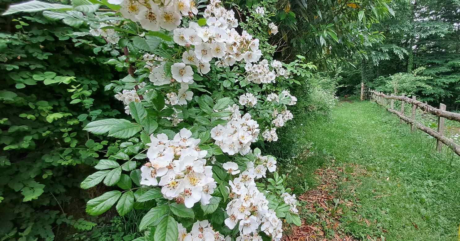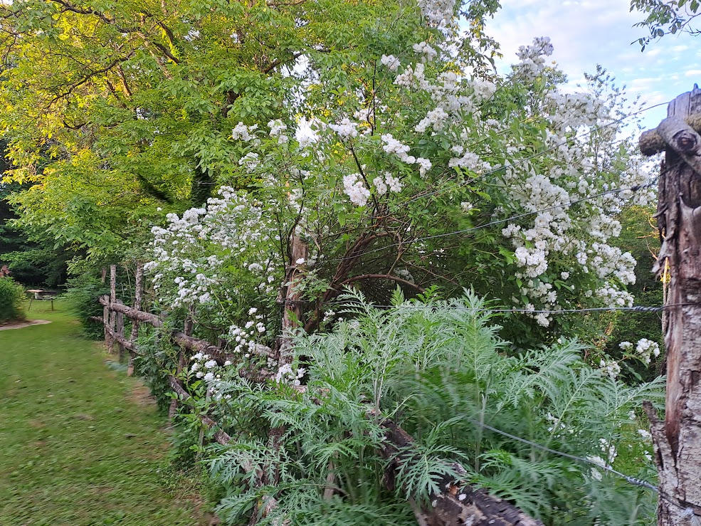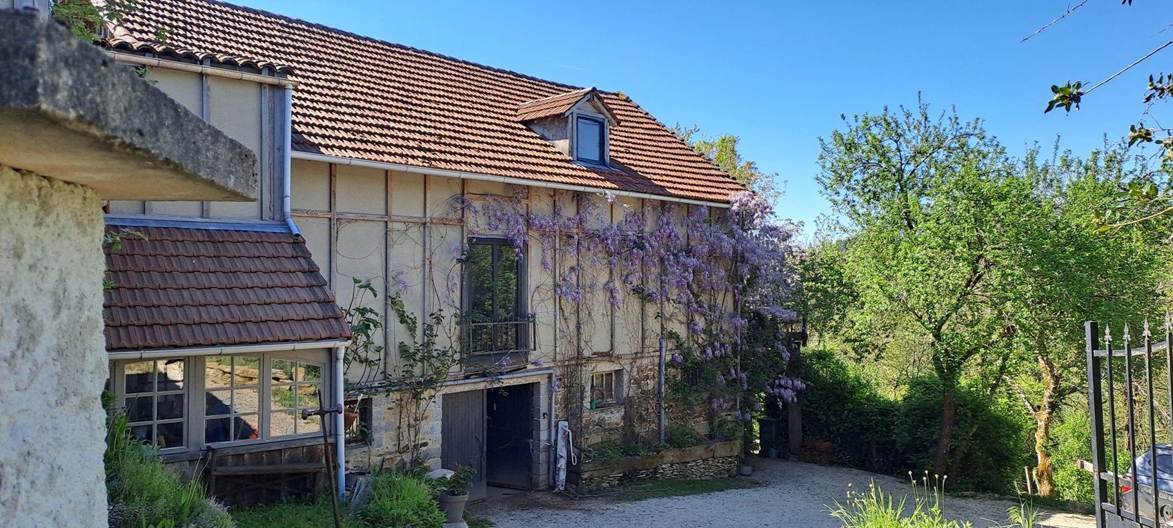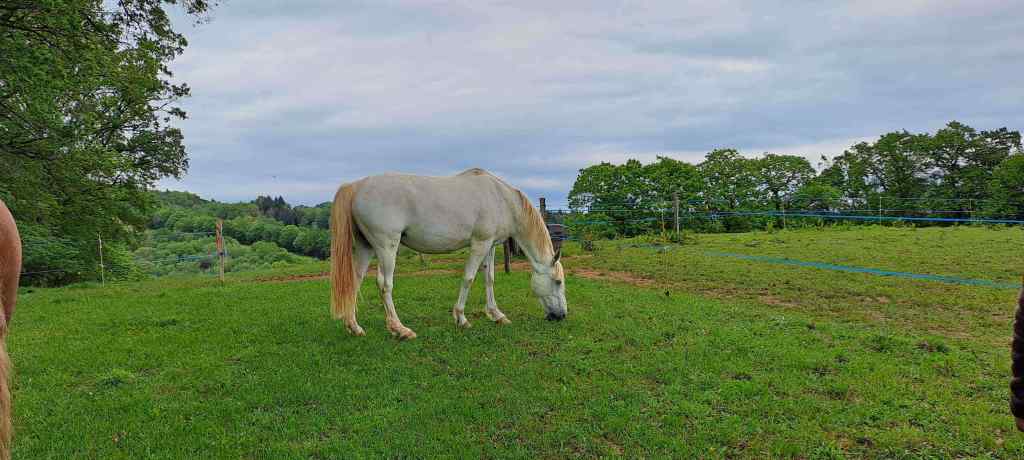 We have 5 hectares/12.5 acres of land. Approximately 2.5 hectares/6.25 acres are meadow, 2.5 hectares/6.25 acres are forested (chestnuts, oak, beech and birch primarily), while the mature garden measures around 2500 m2. Harvesting our firewood from the forest means winter heating costs are negligible; chestnuts, walnuts and wild mushrooms abound and provide delicious abundance throughout the year. We have two horses, a dog and cat and a family of chickens. This verdant part of the Lot is home to a vast and varied bird population as well as many wild creatures.