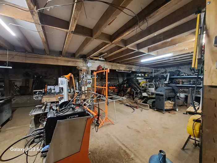 Au rez-de-chaussée de la grange, un grand atelier pourra contenir de nombreuses machines et outils