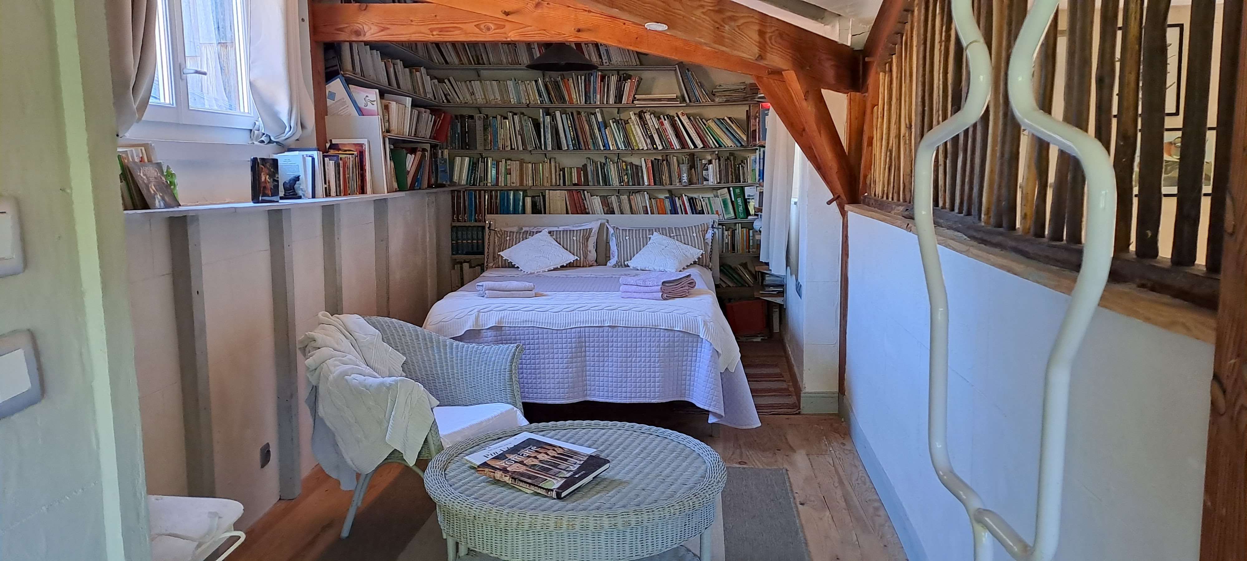 La chambre bibliothèque comprend un salon, une jolie salle d’eau avec WC et une chambre pour tous ceux qui aiment rêver ou lire.
