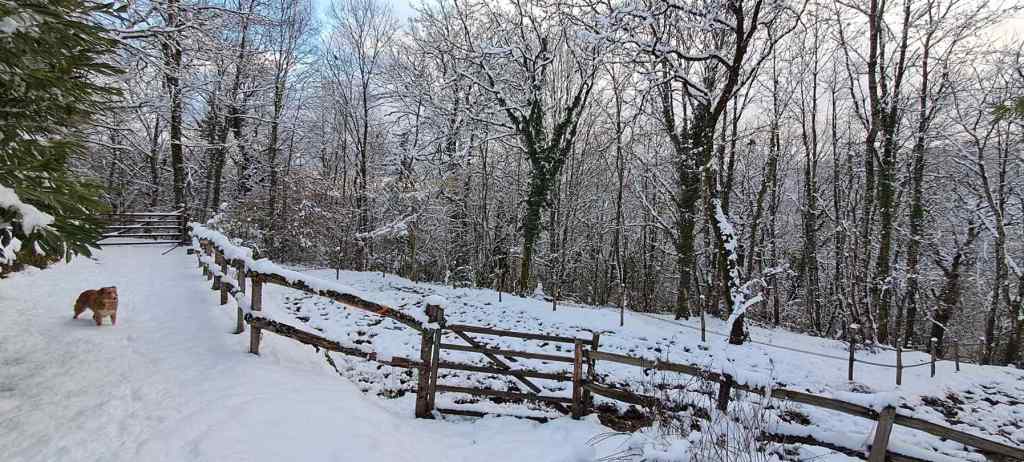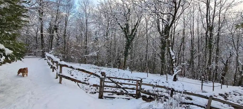 la neige vient parfois recouvrir d’une blanche couverture forêt et jardin. Durant l’hiver, les oiseaux (mésanges charbonnières, mésanges bleues, rouges-gorges, etc.) aiment venir grappiller les graines laissées sur la terrasse, tandis qu’à l’intérieur les poêles ronronnent, dégageant une douce chaleur. La forêt, généreuse, vous donnera le bois nécessaire pour vous chauffer, profitant d’une énergie renouvelable fort appréciable.