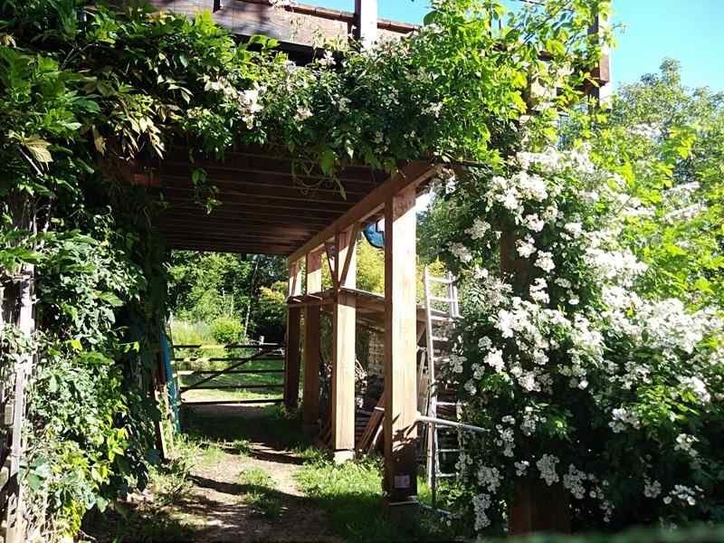 D’autres fleurs apparaissent, le jardin se pare d’une beauté sans égale et les fruits sur les arbres commencent à mûrir : les prunes ; les coings etc. Sous la terrasse, il y a un box cheval et un abri pour déposer le foin Sous la serre mûrissent les tomates et autres légumes. Le grand Parking peut facilement accueillir : 5 voitures. Tout au fond du parking, il y a un abri pour bois de chauffage, fort utile pour entreposer vos bûches.