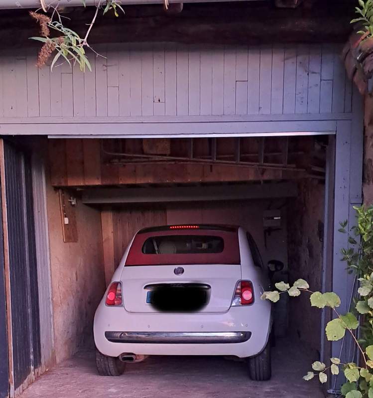 Une voiture de modestes dimensions peut y entrer Un séchoir avec deux espaces définis l’un au-dessus de l’autre s’ouvre sur votre droite, actuellement utilisé comme réduit où déposer les outils de jardin ou autres.