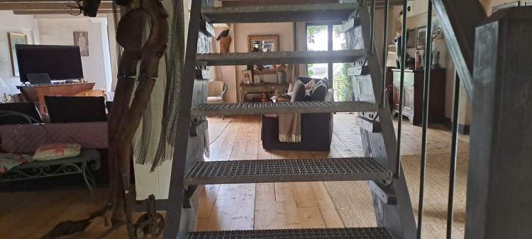 Within the ‘complex’ of the two living spaces there is also a studio, a tack room and a cellar. Below the former barn, now main house, there is a 123 m2/1325 ft2 workshop/studio where John creates his metal sculptures. If so desired, this space could easily be converted into further living space or used for storage or a garage.
