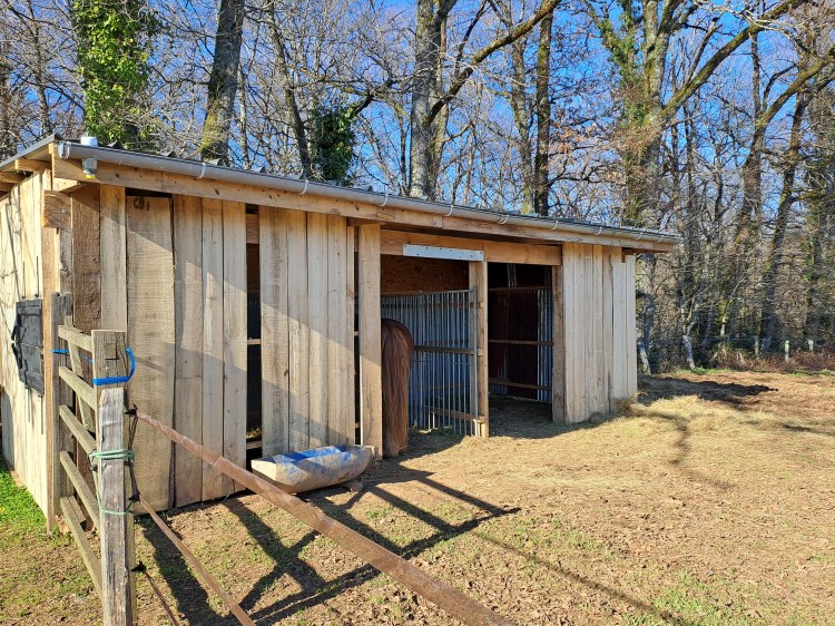 Il comprend 2,5 hectares de prairie et 2,5 hectares de forêt. Un abri pour deux chevaux permettra de protéger vos animaux et de garder le foin au sec. Tout au fond de la vallée, deux petits cours d’eau traversent le champ. Idéal pour le camping ou glamping, pour les chevaux ou autres animaux (chèvres, moutons etc.), enfin pour tous vos projets présents ou futurs.